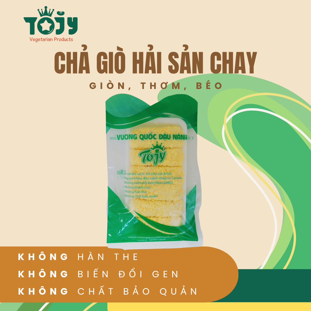 - Chả Giò Hải Sản Chay là món chay giả mặn được làm từ nguyên liệu chính là Đậu Hũ đáp ứng tiêu chí 3 KHÔNG:* KHÔNG BIẾN ĐỔI GEN - Non GMO