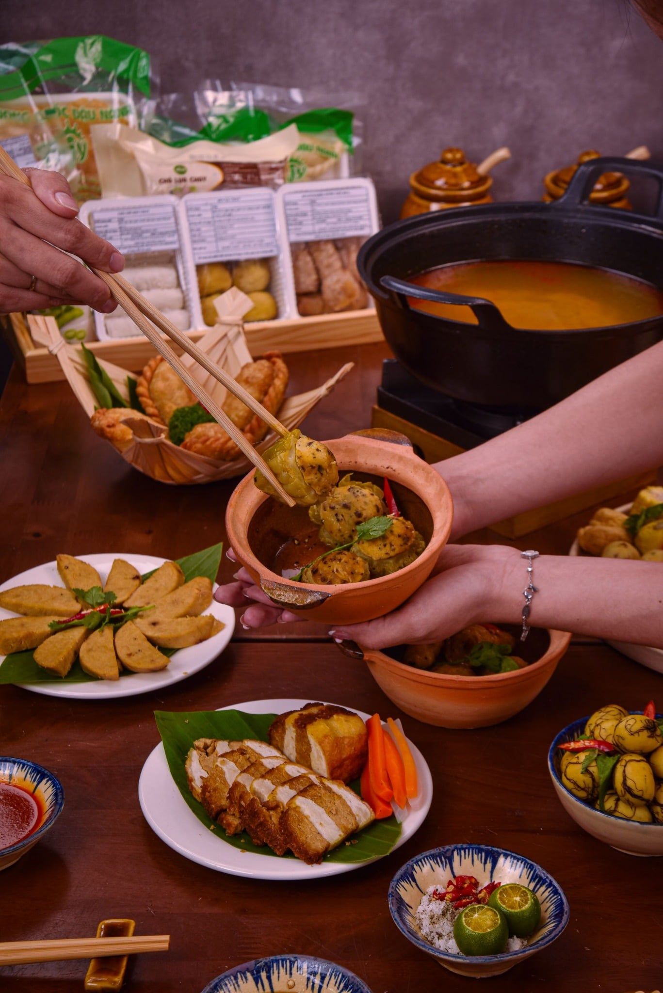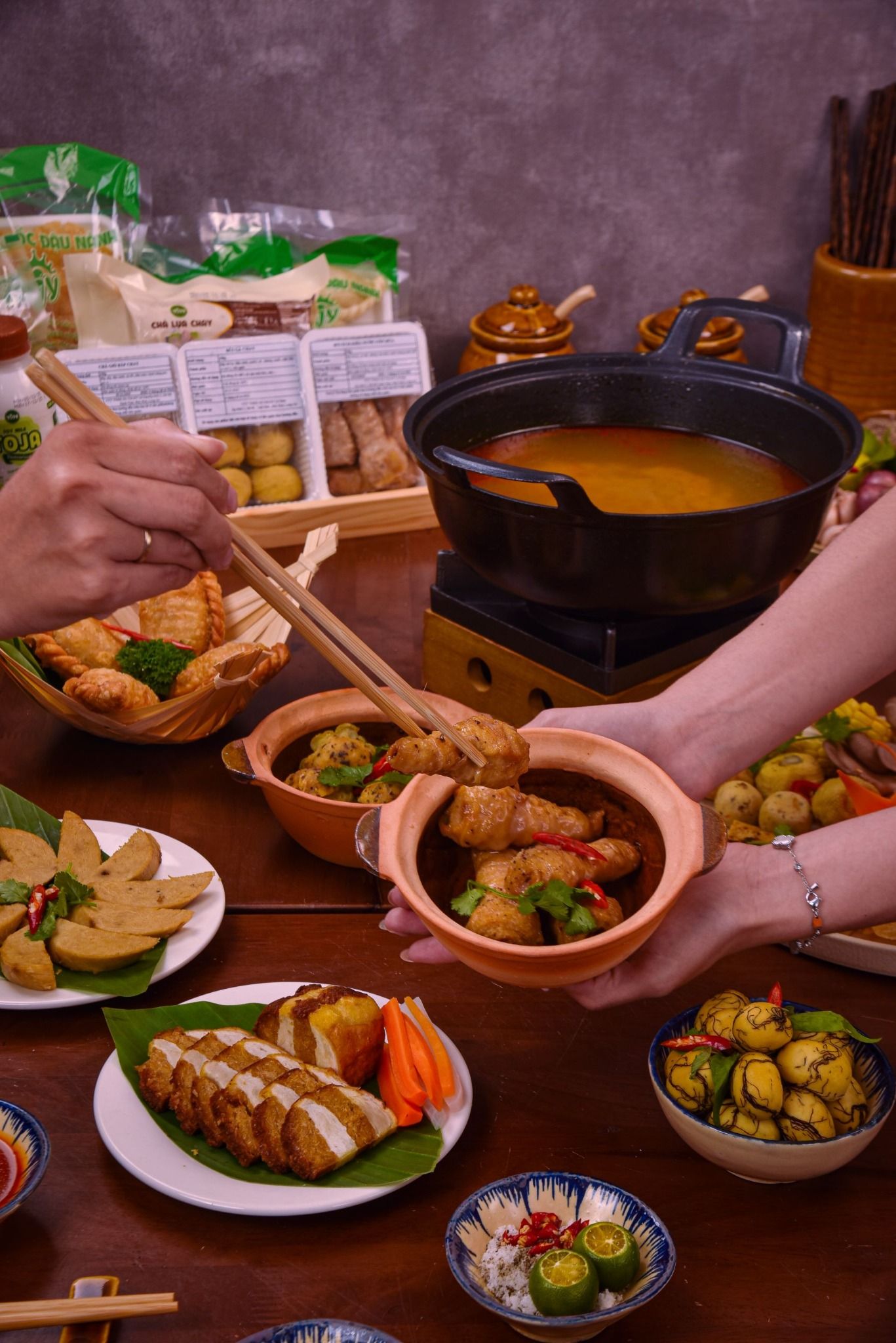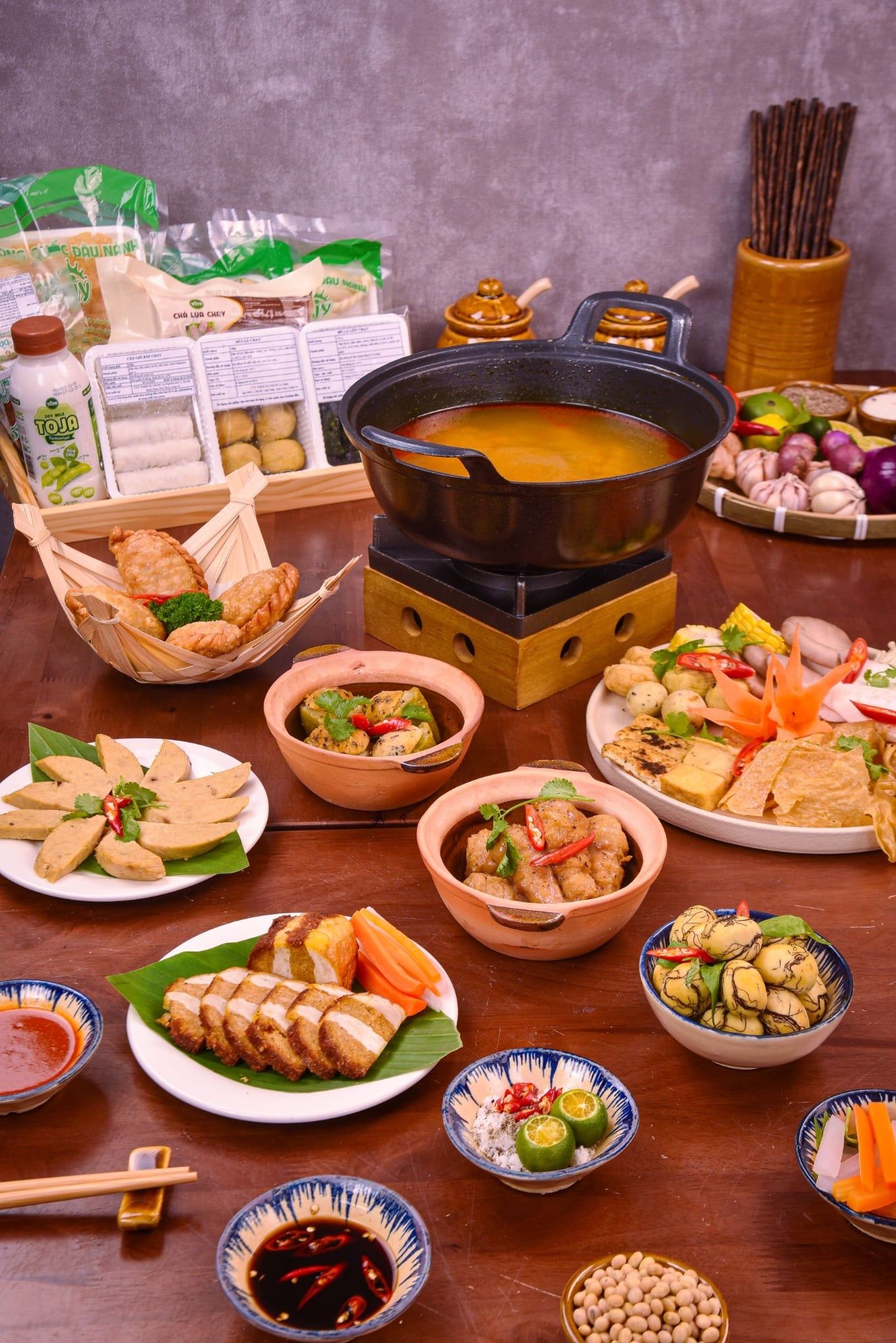 Dành cho những gia đình nhỏ hoặc nhóm bạn muốn vừa ăn vừa trò chuyện. Bàn tiệc có đủ khai vị, món kho ăn cùng cơm trắng và món lẩu đậm đà, cùng sữa đậu thanh mát,Không cầu kỳ, nhưng đủ phong vị để mỗi người đều tìm thấy hương vị yêu thích.