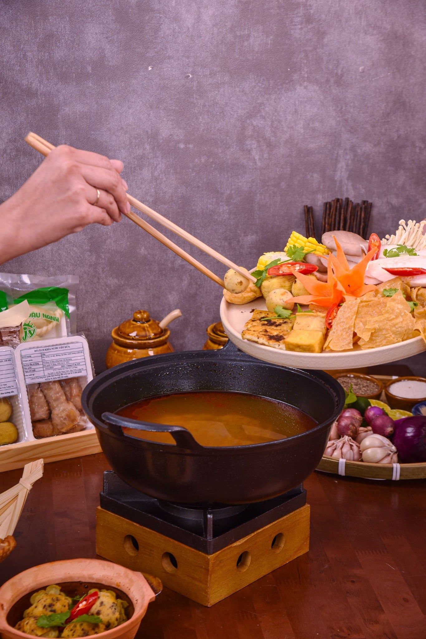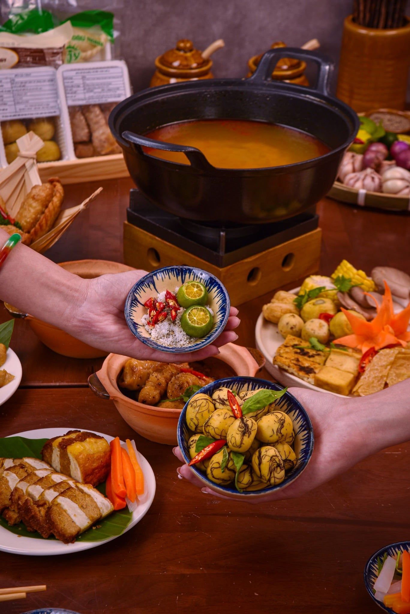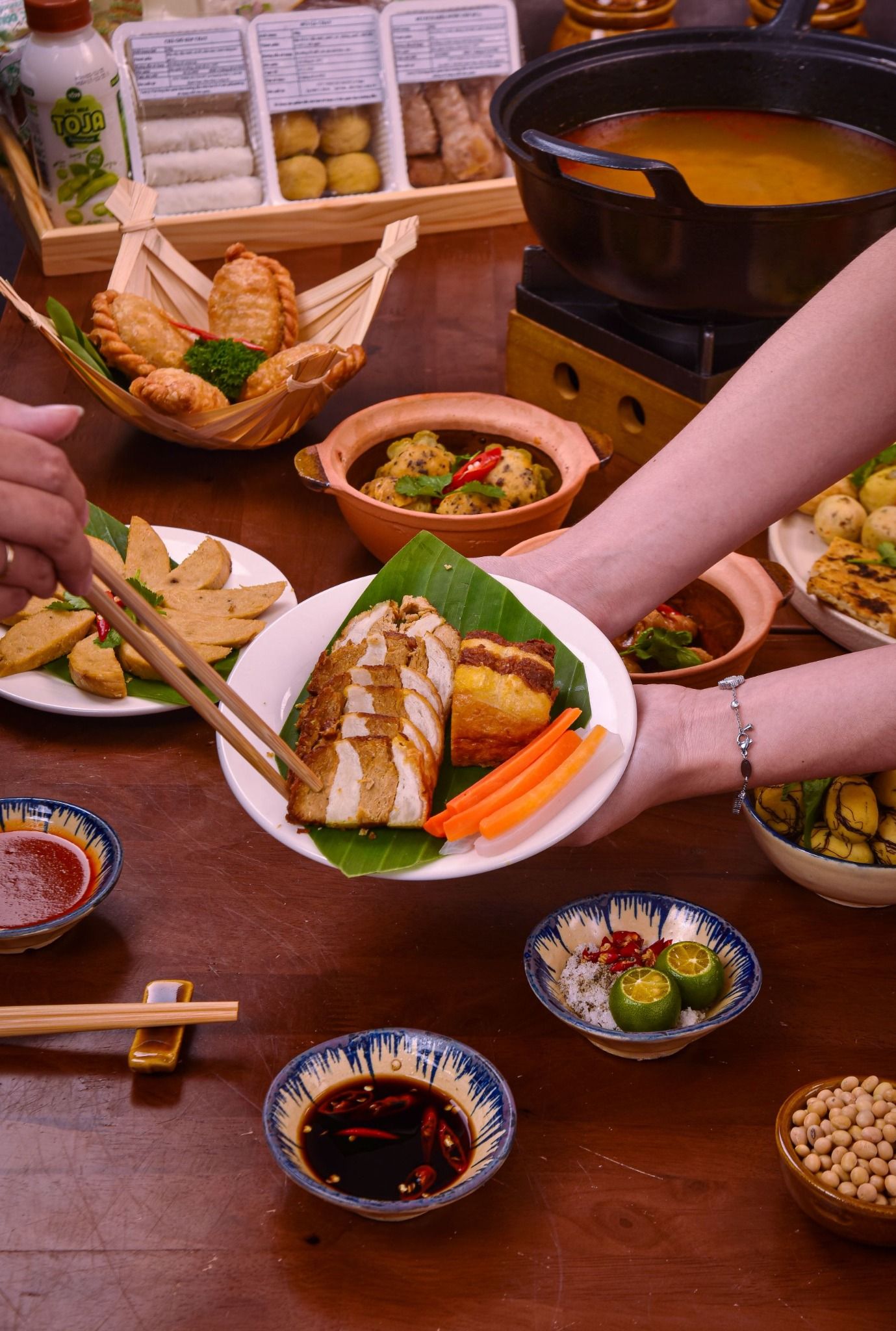 Dành cho những gia đình nhỏ hoặc nhóm bạn muốn vừa ăn vừa trò chuyện. Bàn tiệc có đủ khai vị, món kho ăn cùng cơm trắng và món lẩu đậm đà, cùng sữa đậu thanh mát,Không cầu kỳ, nhưng đủ phong vị để mỗi người đều tìm thấy hương vị yêu thích.