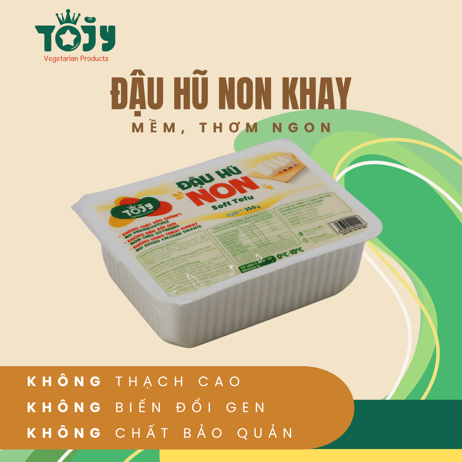 - Đậu Hũ Non TOJY đáp ứng tiêu chí 3 KHÔNG:* KHÔNG BIẾN ĐỔI GEN - Non GMO