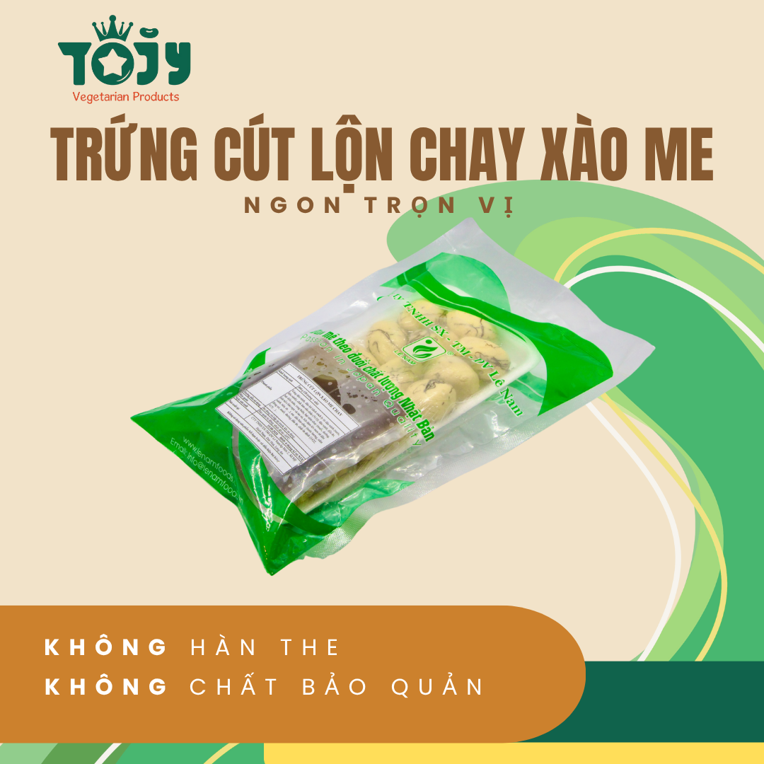 - Trứng Cút Lộn Xào Me Chay là món chay giả mặn được làm từ nguyên liệu chính là Đậu Hũ đáp ứng tiêu chí 3 KHÔNG:* KHÔNG BIẾN ĐỔI GEN - Non GMO