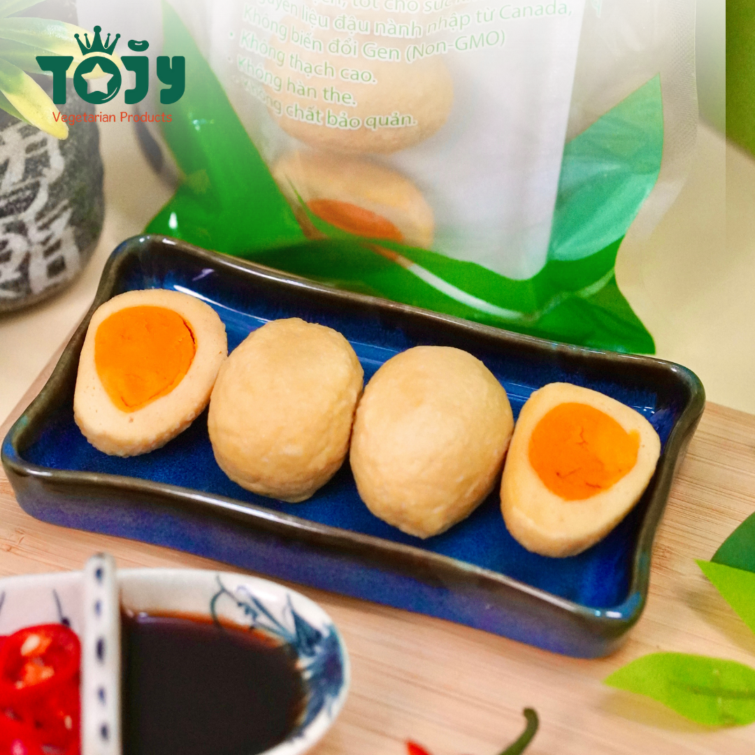 - Trứng Vàng Chay là món chay giả mặn được làm từ nguyên liệu chính là Đậu Hũ đáp ứng tiêu chí 3 KHÔNG:* KHÔNG BIẾN ĐỔI GEN - Non GMO